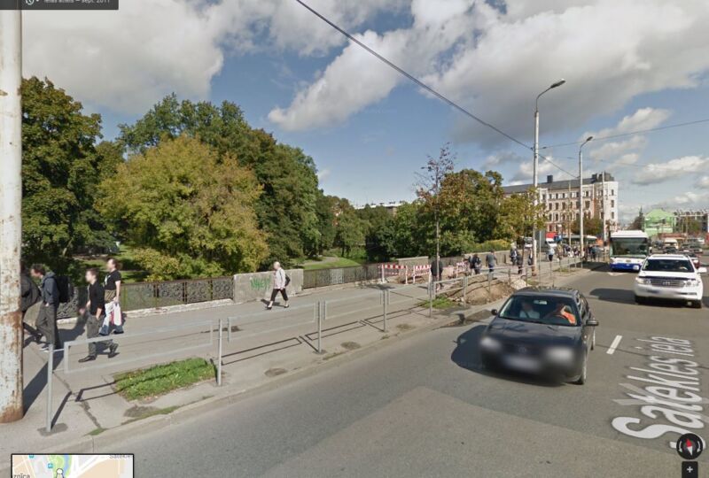 Savukārt pie Satekles ielas tilta pār kanālu koki un to dobes iznīcināti pakāpeniski. Pagājušajā gadsimtā tur vēl atradās lieli, kupli un skaisti koki, kā to var redzēt tā laika fotogrāfijās. Vēl 2011. gadā tur atradās piecas dobes un četri jauni koki. Tukšo dobi noasfaltēja un 2014. gadā tur atradās jau vairs tikai četras dobes un divi koki. Šogad tur vairs neatradās neviens koks un RDSD visas atlikusās tukšās dobes noasfaltēja.