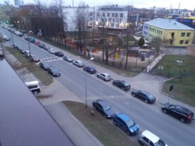Svētdienā iela joprojām bija salīdzinoši brīva no automašīnām, bet nekādi tīrīšanas darbi nenotika. Vakarpusē ielas malas atkal piepildījās ar automašīnām – rīdzinieki atgriezās no laukiem.