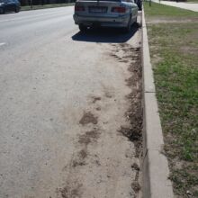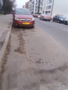 Skats Vesetas ielā bez izmaiņām – autovadītāji turpina brīvajās vietās novietot automašīnas, kaut gan ceļa zīmes to neatļauj darīt. Brauktuves malas gar automašīnām ir ļoti netīras:
