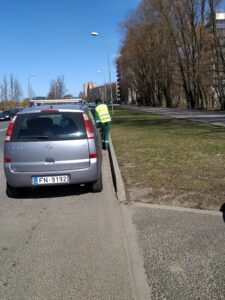Pēcpusdienā ielu apsekoja Rīgas pašvaldības policija, kas visām automašīnām aiz vējstikla slotiņām novietoja brīdinājumus: