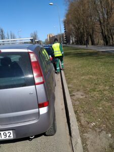 Ap plkst. 14 ieradās Rīgas pašvaldības policija un vairākām automašīnām sastādīja tā sauktos plāksterus – administratīvā pārkāpuma protokolus.