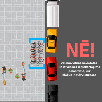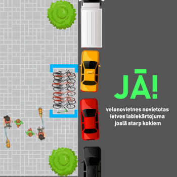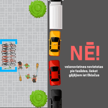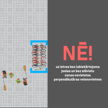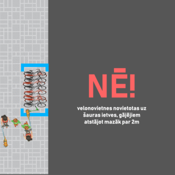 Lai gan Rīgā šobrīd nav pārāk daudz velonovietņu, tomēr šobrīd tās tiek izvietotas aplami – uz ietvēm, pat ja blakus ir stāvvietu zona: