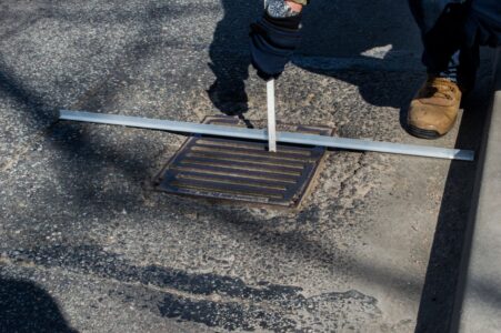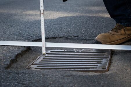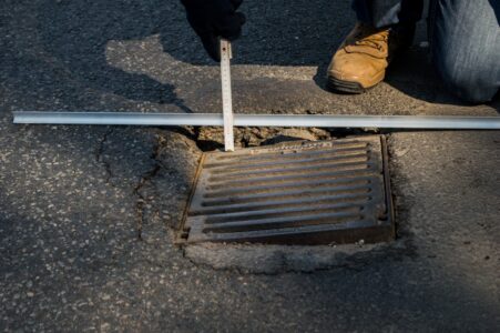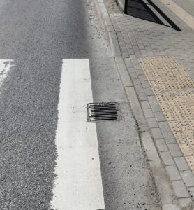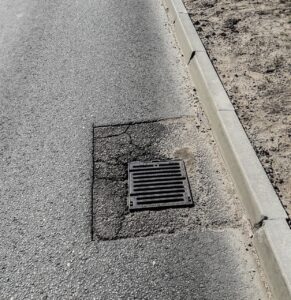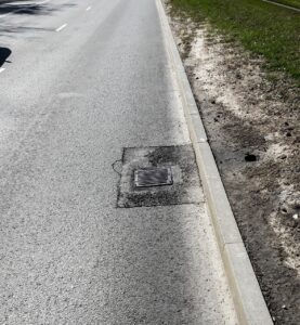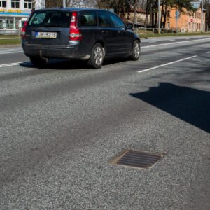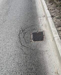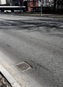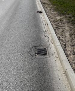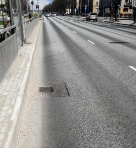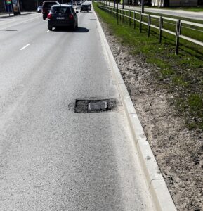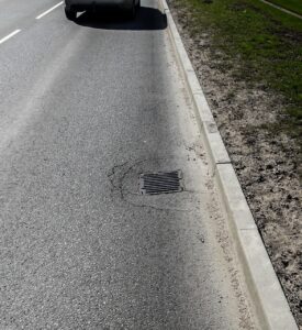 Fotouzņēmumos, kuri veikti 16. aprīlī, varam redzēt, ka liela daļa lietus ūdens uztvērējakas ir iegrimušas asfaltā, un tām apkārt izveidojušās plaisas, savukārt daļai uztvērējaku plaisas jau ir pārvērtušās visnotaļ iespaidīgās bedrēs. Tāpat redzams, ka atsevišķām uztvērējakām apkārt jau ir ieklāts jauns asfalts, kas liecina par to, ka tās jau ir remontētas.