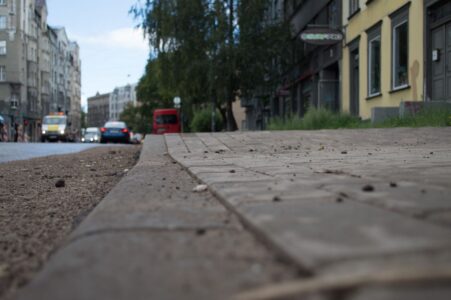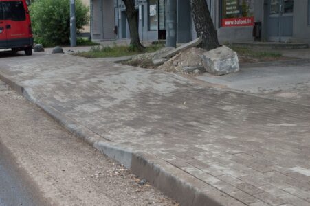 Izrādās, ka arī Rīgā tā var būvēt – pie Ministru kabineta atjaunotā ietve veidota nepārtraukta, bez “amerikāņu kalniņiem”: