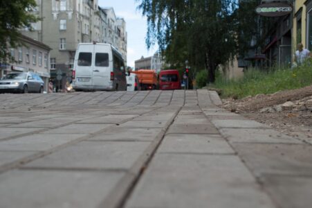 Pagājušajā nedēļā Lāčplēša ielā no ietvēm tika izlauzts asfalts un tā vietā ietve tika nobruģēta. Par šī bruģa labajām un sliktajām īpašībām šoreiz nerunāsim, bet parunāsim par ko citu – par to, kādā profilā tika nobruģēta ietve pie ēku vārtrūmēm un iebrauktuvēm blakusteritorijās. Ja vēl pirms bruģēšanas ietve bija vairāk vai mazāk līdzena – slīpums, kas paredzēts, lai automašīna varētu uzbraukt uz ietves, bija tikai pie pašas brauktuves: