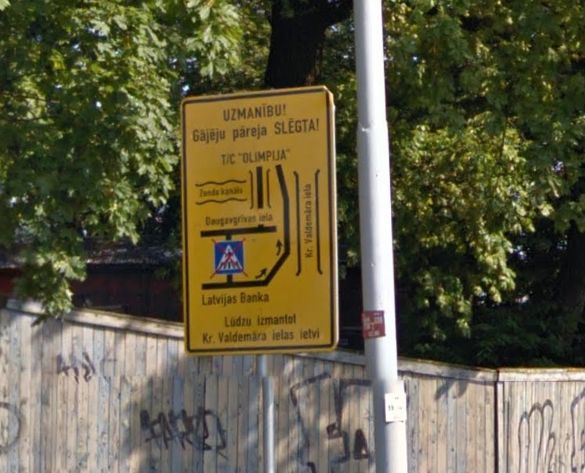 Šādi projektētāji un Rīgas domes Satiksmes departaments pārplānoja ceļus gājējiem un velosipēdistiem. Agrāk, ja vēlējies nokļūt šajā mājā vai tālāk esošajā Latvijas Bankas naudas krātuvē un Latvijas Valsts Arhīvā bija jāmēro gājēju pāreja vien 40 metru garumā (shēmā dzeltenā krāsā). Tagad, lai nokļūtu šajā mājā jāmēro 600 metri (shēmā sarkanā krāsā). Vai Rīgā prioritāte tiešām ir gājēji un velosipēdisti?