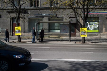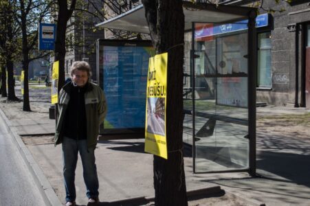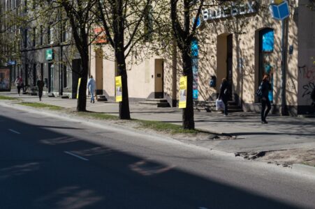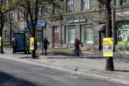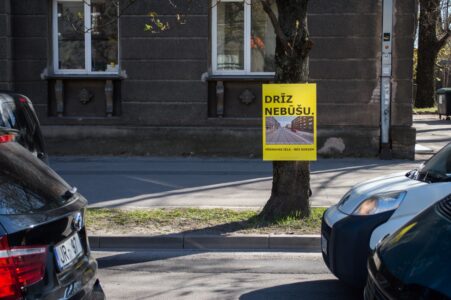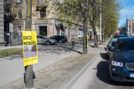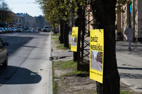 Lai pievērstu apkārtējo iedzīvotāju uzmanību plānotajai koku izciršanai, 3. maija rītā pie kokiem piestiprinājām informatīvus plakātus: