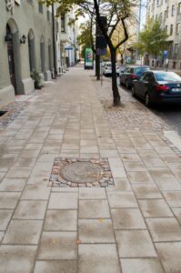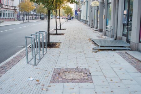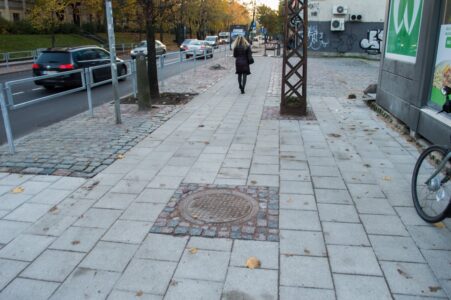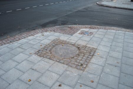 Gaužām nesaprotams ir šī gada risinājums apakšzemes komunikāciju aku vāku iestrādāšanai ietvēs. Līdzenie aku vāki apstrādāti ar raupjo un ļoti nelīdzeno granīta bruģi, tādējādi izceļot katru mazāko vāciņu. Šāds risinājums, pirmkārt, ir traucēklis invalīdiem – tas mulsina neredzīgos, kuri domā, ka priekšā ir šķērslis, savukārt cilvēkiem invalīdu ratiņkrēslā šajā bruģī var iestrēgt mazie ritentiņi un braukšana pa šādu bruģi ir ļoti nepatīkama. Savukārt veseliem cilvēkiem var nākties nepatīkami paklupt vai atdauzīt kāju pirkstus pret pēkšņo negludo bruģi gludās ietves vidū: