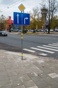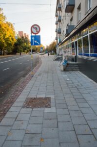 Tiesa, atsevišķās vietās ceļazīmes nez kāpēc nav pārvietotas uz ietves malu, bet ceram, ka tās tomēr tiks pārvietotas: