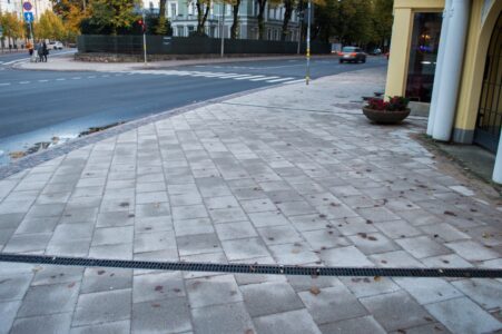 Lielisks risinājums, kā novadīt lietusūdeni, neapgrūtinot pārvietošanos gājējiem, redzams nupat remontētajās Maskavas ielās: