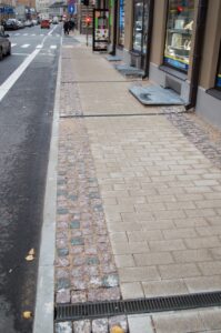 Viena no briesmīgākajām idejām, ko pērn departaments iesāka realizēt Kr. Barona ielā un nu turpina visās pārējās Rīgas ielās, ir lietusūdens tekņu iezāģēšana ietvēs. Šāda ideja ir pilnīgs arhaisms un nav saprotama, jo jau 90. gadu beigās Rīgā ēku lietusūdens novadīšanas sistēmas tika iebūvētas pazemē, zem ietvēm, savienojot tās ar pazemes notekūdens aizvadīšanas sistēmām. Kāpēc 2017. gadā aizmirsts loģiskais problēmas risinājums un ir sākts būvēt tādu risinājumu, kādu Eiropas pilsētās šādā izpildījumā praktiski neredzēsim?