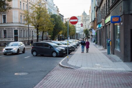 Iesākumā jāatzīmē labais – Stabu ielā pie Ceļu policijas ēkas ir likvidēta iespēja automašīnas novietot starp kokiem, bojājot to saknes, bet Elizabetes ielā likvidētas tik ļoti traucējošās autostāvvietas uz ietvēm starp Kalpaka bulvāri un Nikolaja Rēriha ielu. Nu tūristi varēs bez problēmām iemūžināt ielas skaisto jūgendstila arhitektūru, nebaidoties uzskriet virsū uz ietves novietotajām automašīnām (velc līniju, lai atklātu kā ietve izskatījās pirms/pēc remontdarbiem):