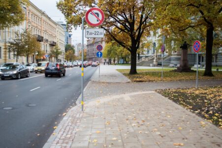 Šogad remontētajās ielās ceļazīmes pārvietotas uz ielas malu, kas nozīmē krietni ērtāku ceļu visiem, kas pārvietojas pa ietvi:
