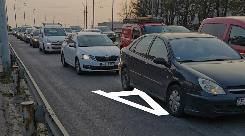 Šeit pusstundas laikā saskaitījām 72 pārkāpējus un jāsaka, ka lielākas problēmas par pārkāpējiem šeit trolejbusiem sagādā muļķīgā satiksmes organizācija, kur sabiedriskā transporta josla uz mirkli “pārtrūkst” un tad atkal parādās, kā rezultātā trolejbusi spiesti gaidīt aiz automašīnām, kas no divām joslām pārkārtojas uz vienu. Bet tomēr – vai autovadītājs, kurš apbrauc garo sastrēgumu pa sabiedriskā transporta joslu un tad pie tilta spraucas priekšā sastrēgumam ir gudrāks par pārējiem autovadītājiem, kas stāv sastrēgumā, vai arī tomēr nekauņa? Katrā gadījumā trolejbuss viņš pilnīgi noteikti nav: