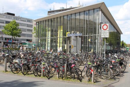 Minsterē (312 000 iedz.) velosipēds ir populārākais transporta līdzeklis un pazemes velonovietne pie centrālās dzelzceļa stacijas velosipēdu popularitāti tikai veicina. Tajā iespējams novietot vairāk nekā 5000 velosipēdus, turpat uz vietas pieejama gan velonoma, gan veloserviss. Darbnīcā pieejama pat tāda ekstra kā automātiskā velomazgātuve. Pazemes velonovietne atklāta pirms gandrīz 20 gadiem – 1999. gadā. Velonovietne tiek apsargāta un gadā par tās izmantošanu jāmaksā 80 EUR, dienā – 0,80 EUR, tādēļ saprotams, kāpēc arī velonovietnes ārpus pazemes velonovietnes ir pilnas ar velosipēdiem – tur tos novietot var bez maksas. Noskaties videoklipu Vimeo ar to, kā milzīgā velonovietne izskatās ikdienā.