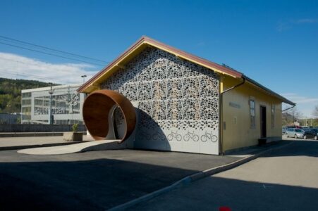 Pilsētā, kas atrodas netālu no Oslo, dzīvo 68 000 iedzīvotāju un šeit pie dzelzceļa stacijas ierīkotā velonovietne var uzņemt 134 velosipēdus, kā arī šeit iespējams uzlādēt 4 elektrovelosipēdus. Velonovietne pieejama tikai abonentiem un durvis tajā iespējams atvērt tikai ar īpašu čipkarti.