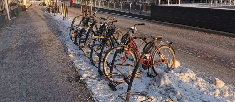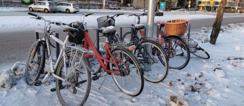 Redzot šīs bildes, Latvija populārais raidījumu vadītājs Pauls Timrots droši vien nodomātu, ka tie tur stāv visu ziemu un neviens jau ar tiem nebrauc. Līdzīgi kā šajā sižetā pirms 2 gadiem Helsinkos, kur Pauls nofilmēja velosipēdus pie centrālās dzelzceļa stacijas, kas bija apsniguši un šos velosipēdus izmantoja kā argumentu tam, ka ziemā tomēr nevar braukt ar velosipēdu.