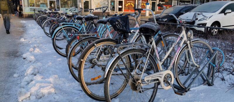 Lai gan ārā gaisa temperatūra dienas laikā sasniedza pat -18°C un vidēji turējās ap -10°C robežās, tomēr ielu malās redzamais skats vairāk atgādināja Nīderlandi – velosipēdi, velosipēdi un vēlreiz velosipēdi.