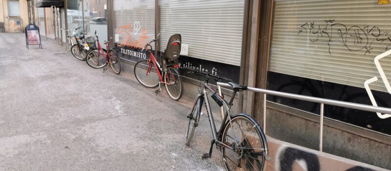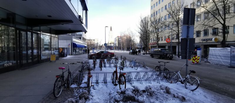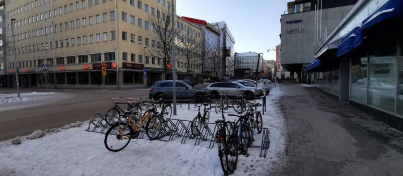 Uzreiz jāpiebilst, ka lielākā daļa velonovietņu ir tādas, kādas Latvijā neisakām uzstādīt – zemā tipa velonovietnes. Tomēr šajā Somijas pilsētā acīmredzot garnadži velosipēdus nav pārāk iecienījuši, jo lielākā daļa velosipēdu pie velonovietnēm pat netiek pieslēgti – tiem vienkārši tiek saslēgts viens no riteņiem vai pat vispār nekas netiek saslēgts. Pilsētas centra ielās novietoto velosipēdu skaits parasti krietni pārsniedza novietoto automašīnu skaitu.